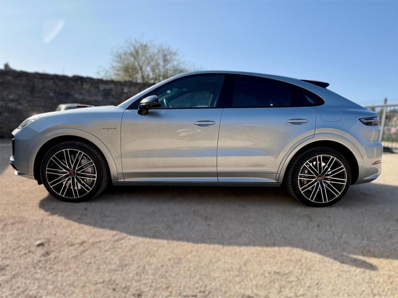 Ce Cayenne Coupé associe un moteur 3,0 V6 essence à un système électrique E‑Hybrid pour proposer 462 ch (puissance dynamique) et une boîte automatique Tiptronic S à 8 rapports. Première mise en circulation le 26/10/2020. Carrosserie SUV Coupé, 5 places, extérieur Gris clair, intérieur Noir.