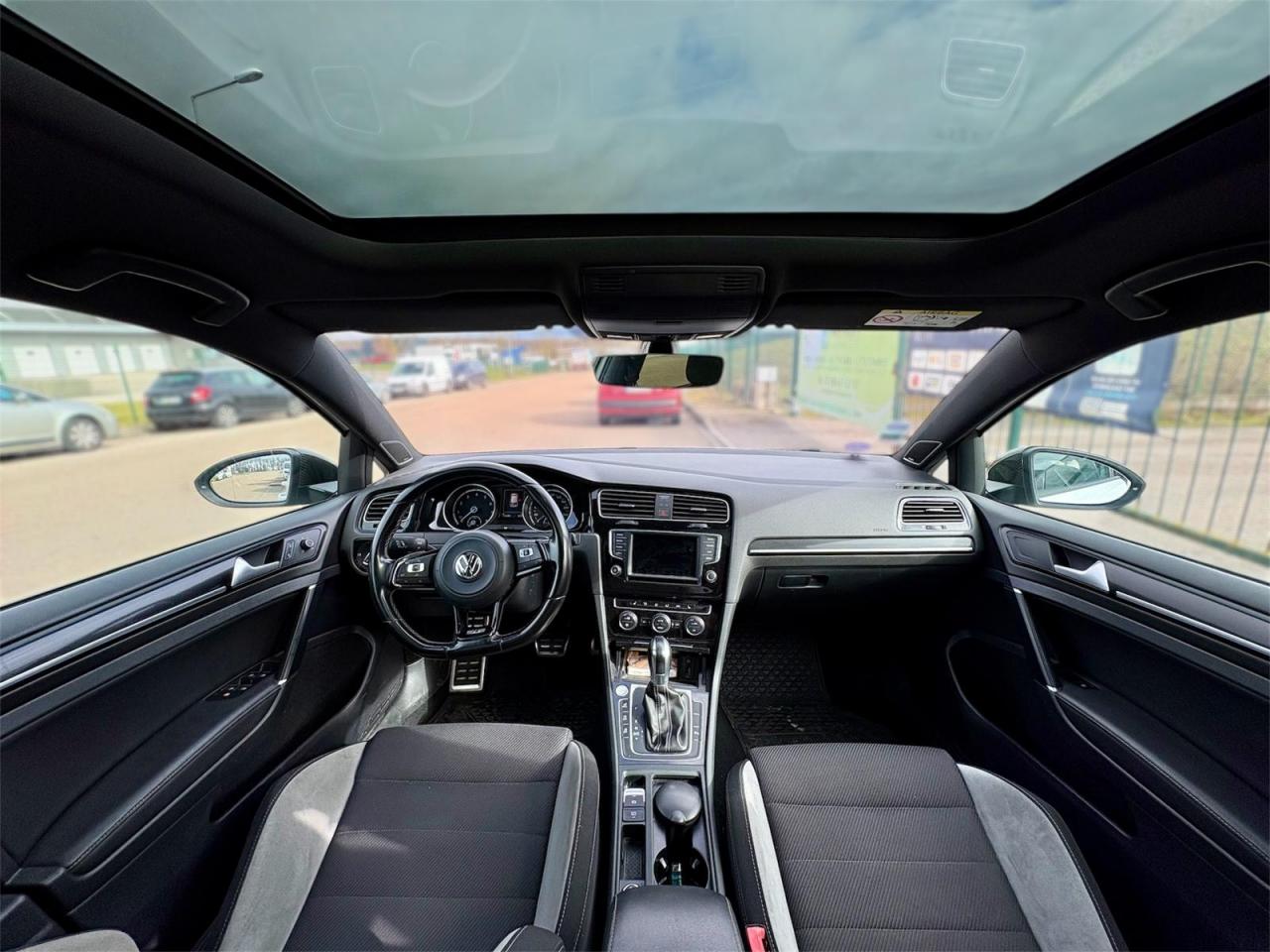 Parmi les équipements notables figurent la caméra de recul avec affichage sur la radio/radionavigation, le contrôle vocal, l’interface Bluetooth « Premium », le DCC (sélecteur de profil de conduite), les jantes alliage 19" Pretoria, le toit ouvrant électrique, la climatisation automatique bi-zone Climatronic, le volant multifonction cuir avec palettes, double sortie d’échappement chromée et seuils « R ». La liste complète des équipements est disponible sur la fiche détaillée du véhicule.